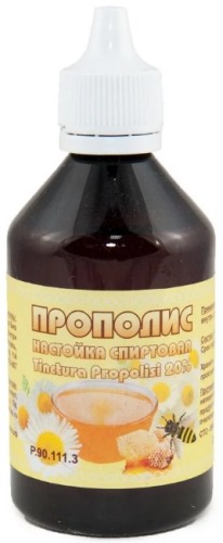 Внутрь настойку прополиса принимают по 20-60 капель, разведенных в 1/4-1/2 стакана воды, 3 раза в день в течение 5-30 дней. При язвенной болезни — 3-4 нед. При микротравмах, ранах используют 1-3 раза в день тампон, смоченный в настойке прополиса.