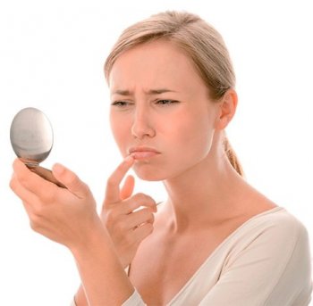 - Не стоит пытаться скрыть высыпания с помощью помады или другой косметики. Компоненты в них могут усугубить воспаление.
