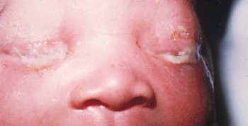 Хламидийный конъюнктивит у доношенных детей развивается на 10-14 день после рождения, в то время как у недоношенных он может появиться уже на 4-й день жизни. Заболевание начинается остро и может затрагивать один или оба глаза. Слизистые гнойные выделения обильны, на нижнем веке образуются пленки, которые легко снимаются.