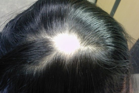 - Локальная или классическая форма гнездной алопеции. Проявляется наличием одного или двух круглых участков облысения.